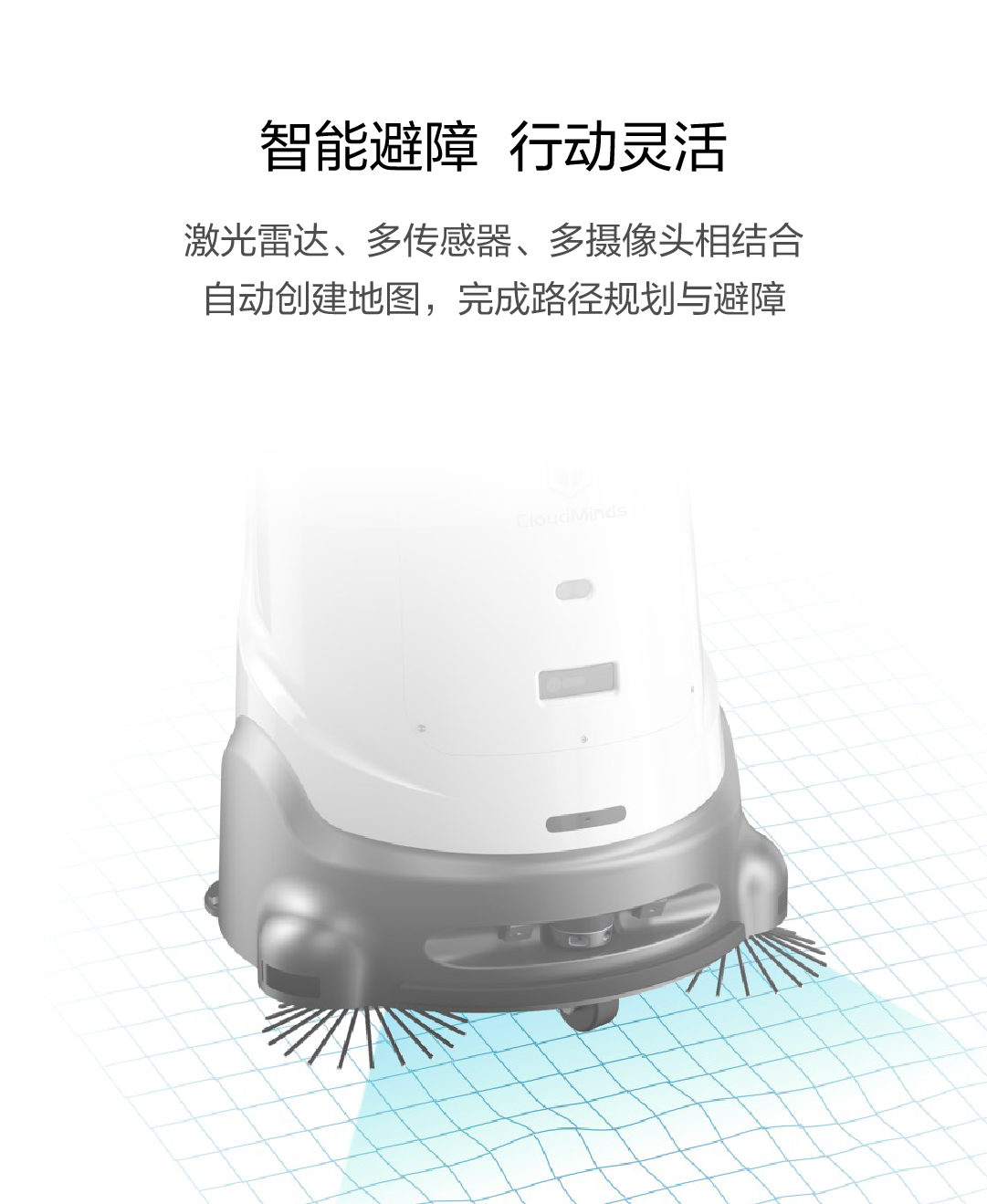 适用于多种复杂场景的无人化清洁消毒作业,省人省力安全高效 云端管控 | 自主导航 | 清洁消毒 | 超长续航
